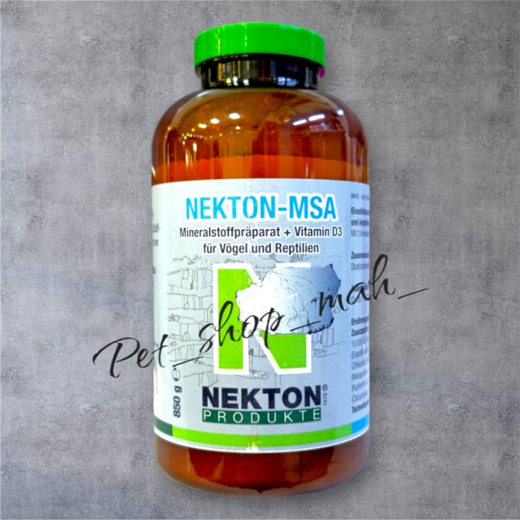 نکتون ام اس آ MSA NEKTON – مکمل ترکیب غنی شده از عناصر معدنی ، اسیدهای آمینه و ویتامین D3 سبب بهبود وضعیت متابولیسم و استخوان ها می گردد و آنها را تقویت می نماید از نرمي استخوان پرندگان زینتی و طوطی سانان جلوگیری مي کند به جبران ضایعات ناشی از کمبود کلسیم پرندگان کمک می کند نیاز روز افزون به مواد معدنی در هنگام تولید مثل و پرورش پرندگان را کاملا پوشش می دهد در برابر عفونت را افزایش داده و از گذاشتن تخم هاي شکننده در پرنده جلوگیری مي کند جهت پیشگیری از بیماری های ناشی از کمبود ویتامین ها و مواد معدنی مورد استفاده قرار می گیرد ترکيب معدني بسيار موثر براي پرندگان ، خزندگان و دوزيستان خانگی Nekton MSA محلول در آب نیست ولی براحتی با غذای نرم یا خوراک پرنده مخلوط می گردد برند معتبر و شناخته شده نکتون Nekton آلمان